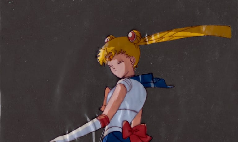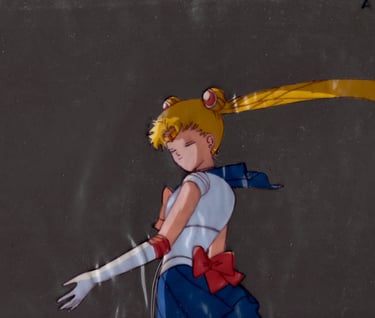 Sailor Moon rises to face Fiore again near the climax of the R movie. This cel is unfortunately vineagaring but it's still a lovely shot from an impactful scene so were happy to own it.