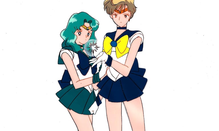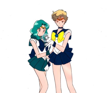 Pan cel of Uranus and Neptune from the 3rd season holding one of the Pure Heart crystals. Unfortunately looks like the bottom was trimmed at some point.